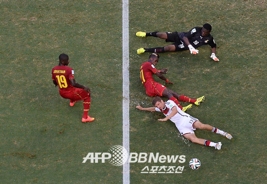 전반을 0-0으로 마친 독일은 후반 6분 기선을 제압했다. 오른쪽 측면에서 올라온 토마스 뮐러의 크로스를 마리오 괴체가 문전 쇄도하면서 머리와 무릎으로 밀어 넣었다. 하지만 기쁨은 오래가지 못했다. 가나의 동점골이 곧바로 이어졌다. 후반 9분 와카소의 오른쪽 측면 크로스를 안드레 아예우가 머리로 마무리지었다. 슈팅 궤적이 워낙 좋아 독일 수문장 노이어 골키퍼도 전혀 손을 쓸 수 없었다.