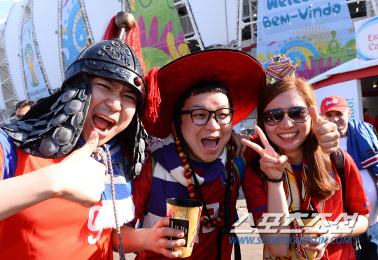 2014브라질월드컵 조별예선 대한민국과 알제리의 경기가 23일 (한국시간) 포르투 알레그레의 에스타디오 베이라리오 경기장에서 열렸다. 독특한 복장의 축구팬들이 경기전부터 응원전을 펼치고 있다.