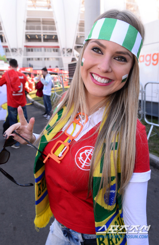 2014브라질월드컵 조별예선 대한민국과 알제리의 경기가 23일 (한국시간) 포르투 알레그레의 에스타디오 베이라리오 경기장에서 열렸다. 독특한 복장의 축구팬들이 경기전부터 응원전을 펼치고 있다.