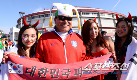 2014브라질월드컵 조별예선 대한민국과 알제리의 경기가 23일 (한국시간) 포르투 알레그레의 에스타디오 베이라리오 경기장에서 열렸다. 독특한 복장의 축구팬들이 경기전부터 응원전을 펼치고 있다.
