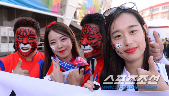 2014브라질월드컵 조별예선 대한민국과 알제리의 경기가 23일 (한국시간) 포르투 알레그레의 에스타디오 베이라리오 경기장에서 열렸다. 독특한 복장의 축구팬들이 경기전부터 응원전을 펼치고 있다.