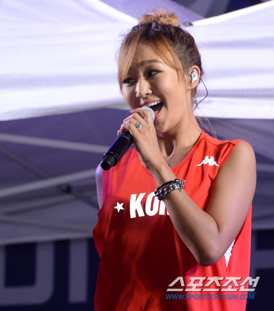 23일 오전 서울 삼성동 코엑스 영동대로에서 대한민국과 알제리의 브라질월드컵 H조 조별리그 2차전에 앞서 SBS 파워FM '김창렬의 올드스쿨' 대한민국 국가대표 축구팀 선전 거리응원 공개방송이 열렸다. 씨스타의 효린이 화려한 무대를 선보였다. 러시아와 1차전에서 무승부를 거둔 대한민국은 조 최하위 알제리를 상대로 조별리그 첫 승을 노린다.