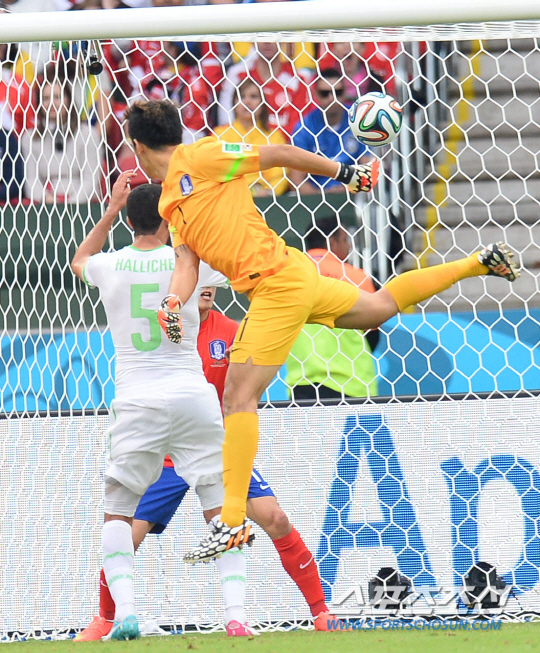 2014브라질월드컵 조별예선 대한민국과 알제리의 경기가 23일 (한국시간) 포르투 알레그레의 에스타디오 베이라리오 경기장에서 열렸다. 한국의 정성룡이 알제리에게 두번째골을 허용하고 있다.