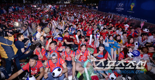 23일 오전 서울 삼성동 코엑스 영동대로에서 대한민국과 알제리의 브라질월드컵 H조 조별리그 2차전에 앞서 거리 응원전이 펼쳐졌다. 러시아와 1차전에서 무승부를 거둔 대한민국은 조 최하위 알제리를 상대로 조별리그 첫 승을 노린다.