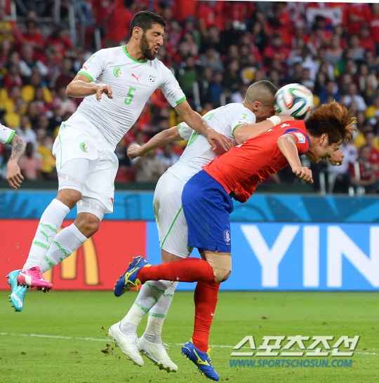 2014브라질월드컵 조별예선 대한민국과 알제리의 경기가 23일 (한국시간) 포르투 알레그레의 에스타디오 베이라리오 경기장에서 열렸다. 한국의 김영권이 문전에서 알제리 수비수와 볼을 다투고 있다.