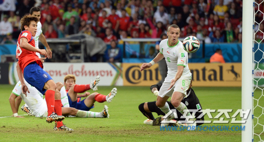 2014브라질월드컵 조별예선 대한민국과 알제리의 경기가 23일 (한국시간) 포르투 알레그레의 에스타디오 베이라리오 경기장에서 열렸다. 한국의 구자철이 팀의 두번째 골을 성공시키고 있다.