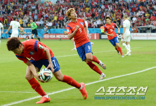 2014브라질월드컵 조별예선 대한민국과 알제리의 경기가 23일 (한국시간) 포르투 알레그레의 에스타디오 베이라리오 경기장에서 열렸다. 한국의 손흥민이 팀의 첫번째 골을 성공시키고 있다.
