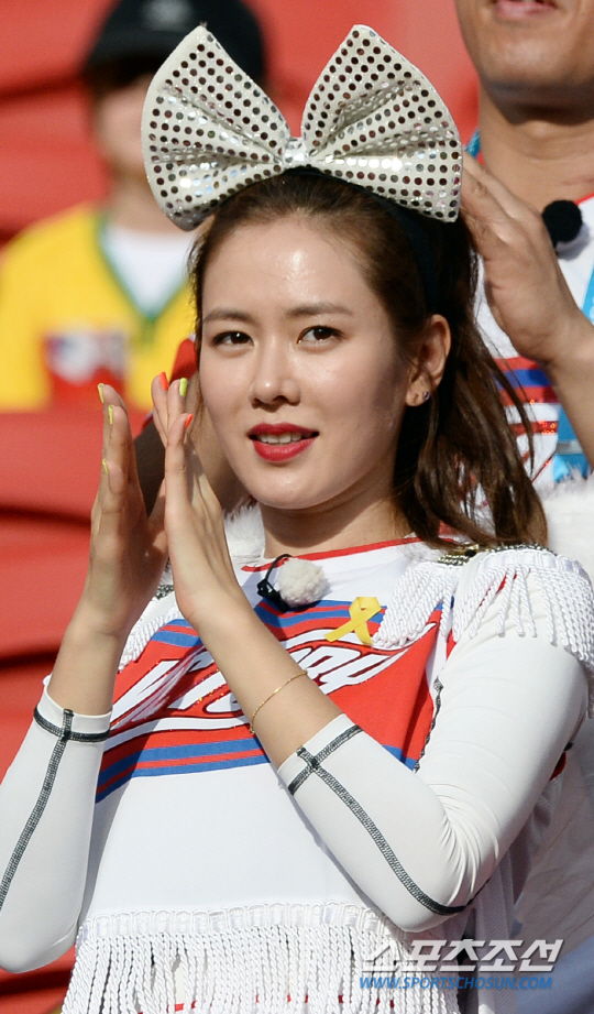 2014브라질월드컵 조별예선 대한민국과 알제리의 경기가 23일 (한국시간) 포르투 알레그레의 에스타디오 베이라리오 경기장에서 열렸다. 탤런트 손예진이 응원전을 펼치고 있다.