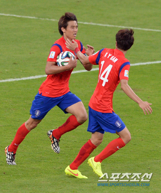 2014브라질월드컵 조별예선 대한민국과 알제리의 경기가 23일 (한국시간) 포르투 알레그레의 에스타디오 베이라리오 경기장에서 열렸다. 한국의 구자철이 팀의 두번째 골을 성공시키고 기뻐하고 있다. 포르투 알레그레(브라질)=최문영 기자 deer@sportschosun.com