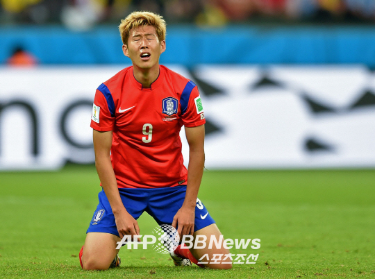 23일 새벽(한국시간)에 펼쳐진 브라질 월드컵 H조 예선 알제리전에 출전한 한국팀 손흥민이 2-4로 패한 후 실망한 표정을 하고 있다.