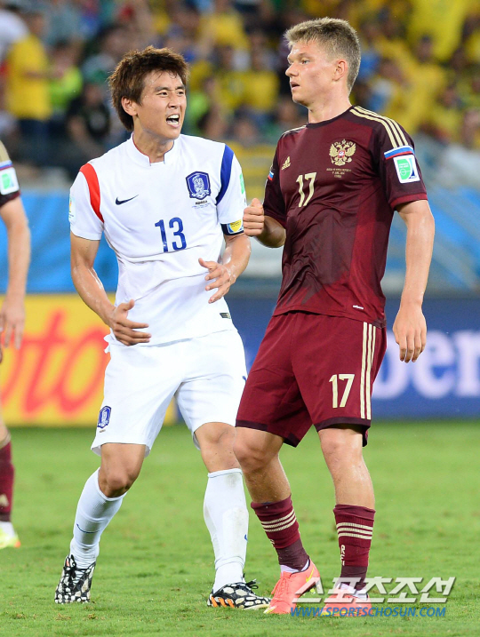 얼굴에 잔디가 묻었는지도 몰랐다. 뛰고 또 뛰었다. 기록이 말해준다. 11.338km를 뛰며 한국영(가시와 레이솔)에 이어 두번째로 많이 뛰었다. 몸을 사리지 않았다. 자신보다 한뼘이나 큰 러시아 선수들을 맞아 온몸을 던졌다. 아쉬운 찬스도 있었다. 두번의 결정적 슈팅이 골망을 흔들지는 못했다. 그는 국제축구연맹(FIFA)과의 독점 인터뷰에서 "나는 최선을 다할 것이며 기꺼이 희생할 것"이라며 "(희생이)팀의 일원으로서 자부심을 느끼게 하고, 그 자부심이 다시 최선을 다하게 만든다"고 했다.