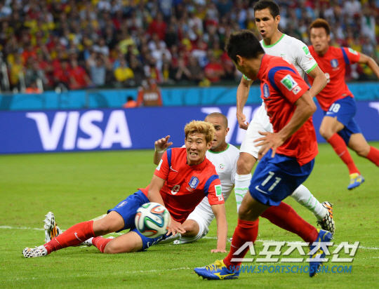 2014브라질월드컵 조별예선 대한민국과 알제리의 경기가 23일 (한국시간) 포르투 알레그레의 에스타디오 베이라리오 경기장에서 열렸다. 한국의 이근호가 알제리 문전에서 구자철에게 패스하고 있다. 포르투 알레그레(브라질)=최문영 기자 deer@sportschosun.com