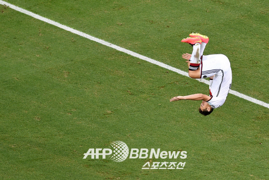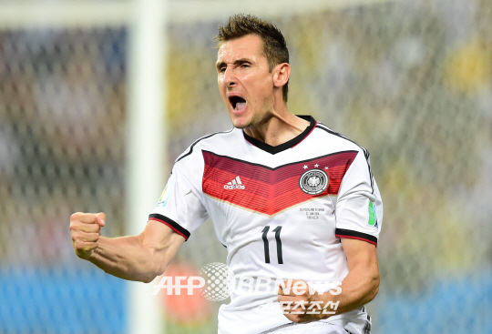 후반 23분 그가 들어갔다. 다들 주목했다. 브라질의 영웅 호나우두가 가지고 있는 월드컵 최다골 기록(15골)에 한 골 모자란 주인공. 새로운 기록이 나오기를 바랐다. 바람은 금방 현실이 됐다. 2분 뒤였다. 토니 크루스가 코너킥을 올렸다. 베네딕트 회데스가 헤딩슛을 했다. 골문을 벗어나는 듯 했다. 그가 번쩍였다. 2선에서 득달같이 달려들었다. 슬라이딩하며 오른발 슈팅으로 연결했다. 골네트가 출렁였다. 골을 확인한 그는 전매특허 공중제비 세리머니를 펼쳤다. 세월을 이길 수는 없었다. 도약이 부족한 탓에 착지에 실패했다. 엉덩방아를 찧었다. 그렇지만 얼굴은 웃음꽃이 피었다. 22일 열린 독일과 가나의 2014년 브라질월드컵 G조 2차전. 1-2로 뒤지고 있던 독일의 천금같은 동점골이자 월드컵 개인 최다골 타이기록을 쓴 그는 미로슬라프 클로제였다.