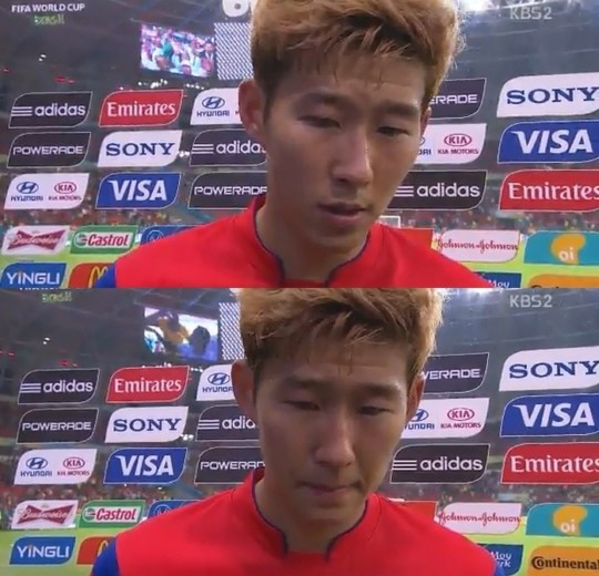 월드컵 데뷔 첫 골을 만회골로 채운 손흥민(22·레버쿠젠)이 알제리전 패배에 결국 눈시울을 붉혔다.