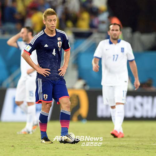 | 그리스 전 무승부 직후 망연자실한 혼다. ⓒAFPBBNews = News1 |