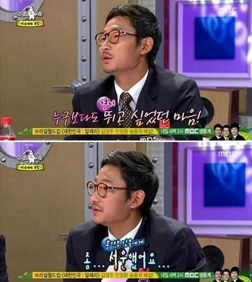 이날 방송에서 MC김구라는 이천수에게 "본인을 대표팀에 뽑지 않은 것에 대해서 어떻게 생각하냐"고 물었고, 이천수는 "월드컵 하기 전까지는 누구보다도 하고 싶고 경험과 좋은 얘기를 해주고 싶었다. 대표팀에서 받은 사랑을 전달해주고 싶었는데 (홍명보 감독에게) 서운하긴 했었다"고 말했다.
