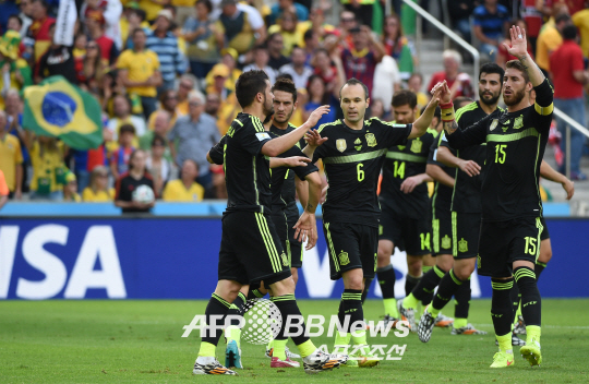 스페인이 24일 새벽(한국시각) 쿠리치바 아레나 다 바이사다에서 열린 호주와의 2014년 브라질월드컵 B조 3차전에서 3대0으로 완승을 거두었다.