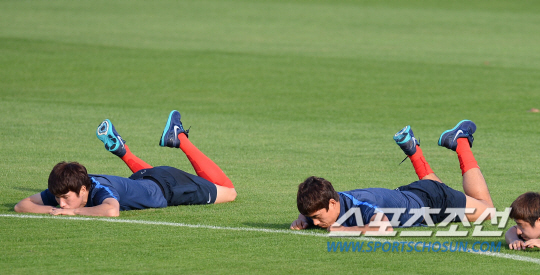 2014브라질월드컵에서 알제리와 조별예선 2차전을 마친 홍명보호가 24일오전(한국시간) 베이스캠프가 있는 이구아수의 플라멩고 경기장에서 회복훈련을 실시했다. 박주영과 선수들이 스트레칭으로 컨디션을 조절하고 있다.