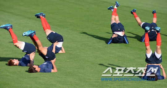 [월드컵포토] 태극전사들 '요가자세로 허리풀기'