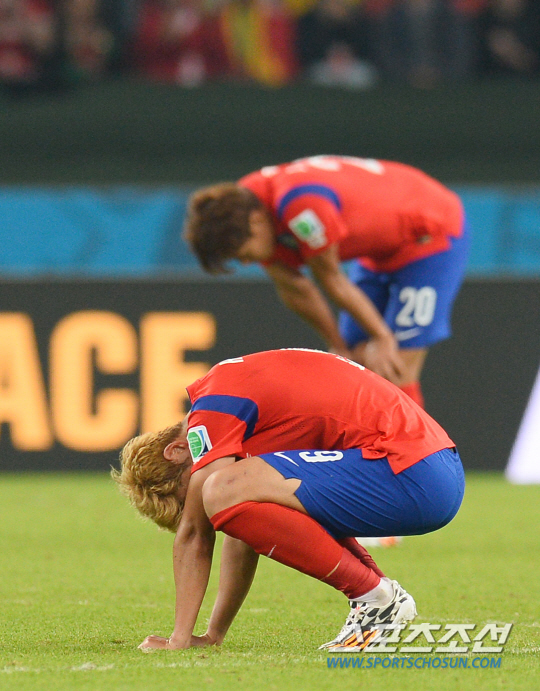 전반 26분, 홍명보호가 사라졌다. 망연자실 했다. 슬리마니에게 선제골을 내준 뒤 마크맨이었던 김영권(24·광저우 헝다)과 홍정호(25·아우크스부르크)는 그라운드에 주저 앉았다. 형들이 급히 수습에 나섰다. 박주영(29·아스널) 이청용(26·볼턴) 기성용(25·스완지시티)이 선수들을 한데 불러 모아 파이팅을 외쳤다. 그러나 이미 엎질러진 물이었다. 전반 28분, 전반 36분 잇달아 실점했다. 그라운드를 바라보던 홍명보 월드컵대표팀 감독은 돌처럼 굳었다. 후반전 손흥민(22·레버쿠젠) 구자철(25·마인츠)의 득점포가 터졌지만, 그게 끝이었다. 2대4의 완패, '포르투알레그레 참사'였다. 경기 종료 휘슬이 야속했다. 손흥민은 어린아이처럼 주저앉아 울음을 터뜨렸다. 그라운드를 빠져 나오는 캡틴 구자철의 눈가에도 이슬이 맺혔다. 홍명보호 누구도 서로를 제대로 쳐다보지 못했다. 포르투알레그레에서 이구아수로 복귀하는 월드컵대표팀 전세기에서 모두가 가슴으로 울었다. 한국 축구의 눈물이었다.