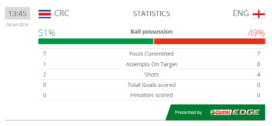 25일 새벽1시(한국시간) 브라질 벨루오리존치 에스타디오 미네이랑에서 펼쳐진 브라질월드컵 조별리그 D조 최종전에서 '2승으로 16강행을 확정한' 코스타리카와 '2패로 16강 탈락을 확정한' 잉글랜드가 맞붙었다.