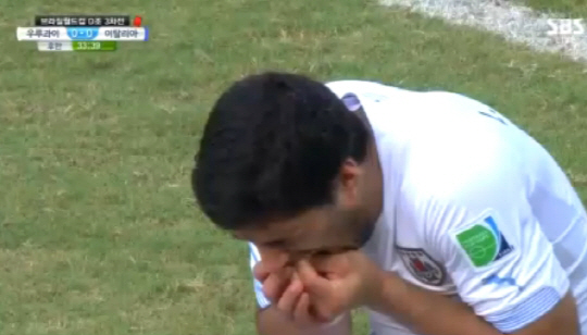 수아레스의 치아가 빛난 것은 이번이 처음은 아니다. 불과 1년여 전인 2013년 4월 리버풀-첼시전에서 첼시 수비수 이바노비치의 팔뚝을 깨물어 전세계적인 이슈가 됐었다. 사후 비디오 판독으로 10경기 출전 징계를 받았다.