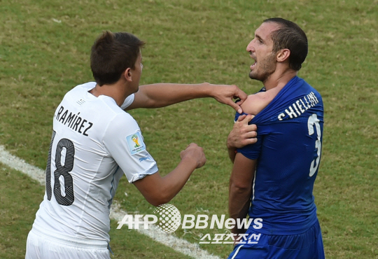 [월드컵포토] 수아레스에게 물린 키엘리니 '이빨 자국이 선명해요'