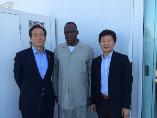 정몽준 대한축구협회 명예회장 겸 국제축구연맹(FIFA) 명예 부회장이 25일(한국시각) 브라질 리우데자네이루에서 이사 하야투 FIFA 부회장 겸 아프리카축구연맹 회장을 만났다.