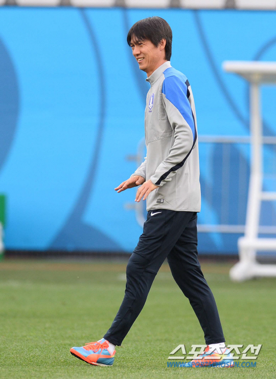 2014브라질월드컵에서 벨기에와 조별예선 3차전을 앞둔 홍명보호가 26일(한국시간)상파울루의 아레나 데 상파울루 경기장에 도착해 적응훈련을 실시했다. 홍명보감독이 선수들의 훈련을 지켜보고 있다.