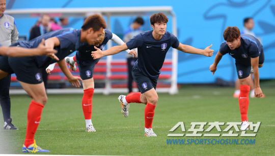 2014브라질월드컵에서 벨기에와 조별예선 3차전을 앞둔 홍명보호가 26일(한국시간)상파울루의 아레나 데 상파울루 경기장에 도착해 적응훈련을 실시했다. 태극전사들이 가벼운 스트레칭으로 경기장 환경에 적응하고 있다.