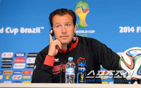당초 예정됐던 시간을 20분 넘겨 기자회견에 나선 빌모츠 감독은 심드렁한 표정으로 "경기장 도착에 1시간20분이 걸렸다. FIFA는 경기장에서 1시간 훈련을 할 수 있다고 했다. 그래서 늦었다. 내일은 늦지 않을 것"이라고 둘러댔다. 한국 취재진이 에덴 아자르(첼시)의 출전 여부를 물어보자 "내일 명단을 보면 알 것"이라고 툭 던졌다. 한국전 분석을 두고는 "다른 팀들과 똑같이 준비했다. 한국은 러시아전을 잘 치렀지만, 알제리전에선 부진했다. 심리적 영향이 있겠지만 신경쓰지 않는다. 그들이 어떻게 준비하고 나올 지도 모르는 일"이라고 잘라 말했다.