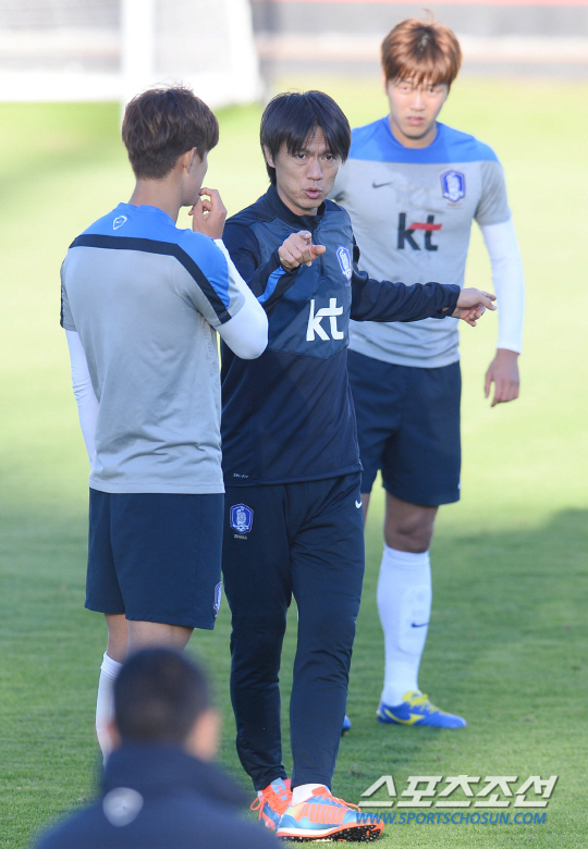 브라질월드컵 조별예선 2차전을 앞둔 홍명보호가 20일 오전(한국시간) 이구아수 플라멩고 경기장에서 알제리전을 향한 훈련에 돌입했다. 홍명보 감독이 윤석영과 김영권에게 수비훈련을 지시하고 있다. 러시아와 1차전에서 무승부를 기록한 대표팀은 23일 포르투 알레그레의 에스타디오 베이라리오 스타디움에서 알제리와 2차전 승부를 펼친다. 이구아수(브라질)=최문영 기자 deer@sportschosun.com /2014.06.20/