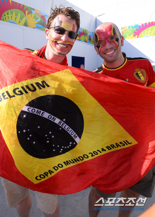 2014브라질월드컵 H조 3차전 한국과 벨기에의 경기가 27일 (한국시간) 상파울루의 아레나 코린치안스경기장에서 열렸다. 각양각색의 복장을 한 축구팬들이 경기장 앞에서 응원전을 펼치고 있다.