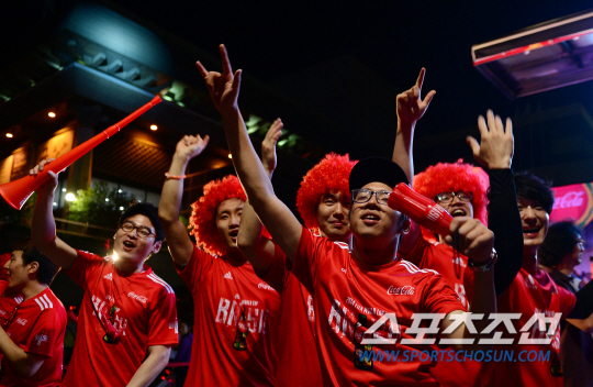 27일 새벽 서울 종로구 세종로 광화문 광장에서 '2014 브라질월드컵' H조 조별예선 3차전 한국 대 벨기에 경기 거리응원이 펼쳐졌다.