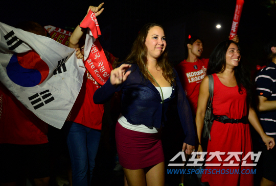 [월드컵포토] '대한민국~' 부르는 의리파 외국인(한국:벨기에)
