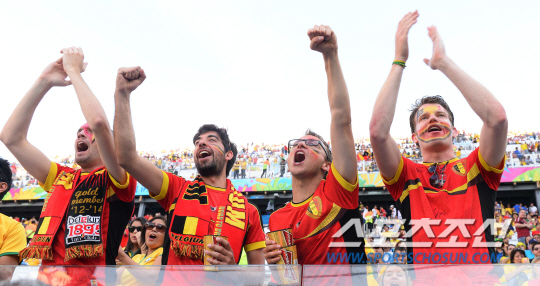 [월드컵포토] 환호성 지르는 벨기에 팬들(한국:벨기에)