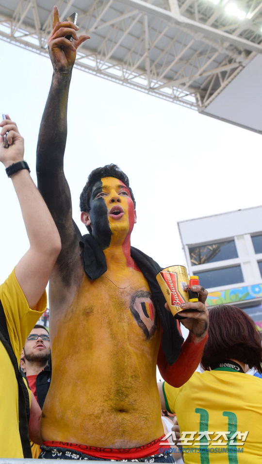 2014브라질월드컵 H조 3차전 한국과 벨기에의 경기가 27일 (한국시간) 상파울루의 아레나 코린치안스경기장에서 열렸다. 각양각색의 복장을 한 축구팬들이 경기장 앞에서 응원전을 펼치고 있다.