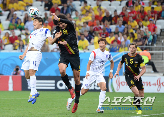 2014브라질월드컵 H조 3차전 한국과 벨기에의 경기가 27일 (한국시간) 상파울루의 아레나 코린치안스경기장에서 열렸다. 한국의 이근호와 벨기에의 펠라니가 치열한 볼경합을 벌이고 있다.