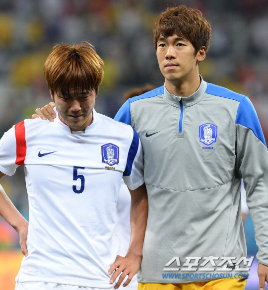 2014브라질월드컵 H조 3차전 한국과 벨기에의 경기가 27일 (한국시간) 상파울루의 아레나 코린치안스경기장에서 열렸다. 김영권과 태극전사들이 벨기에에 0대1로 패한후 경기장을 걸어나오고 있다.
