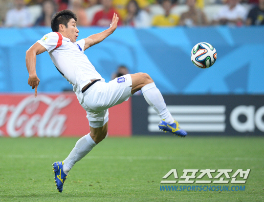 2014브라질월드컵 H조 3차전 한국과 벨기에의 경기가 27일 (한국시간) 상파울루의 아레나 코린치안스경기장에서 열렸다. 한국 이근호가 발리슛을 시도했으나 빗나가고 있다.