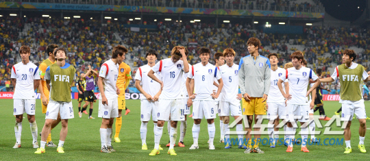 2014브라질월드컵 H조 3차전 한국과 벨기에의 경기가 27일 (한국시간) 상파울루의 아레나 코린치안스경기장에서 열렸다. 태극전사들이 벨기에에 0대1로 패한후 경기장을 걸어나오고 있다.
