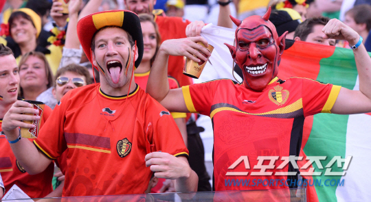 2014브라질월드컵 H조 3차전 한국과 벨기에의 경기가 27일 (한국시간) 상파울루의 아레나 코린치안스경기장에서 열렸다. 각양각색의 복장을 한 축구팬들이 응원전을 펼치고 있다.
