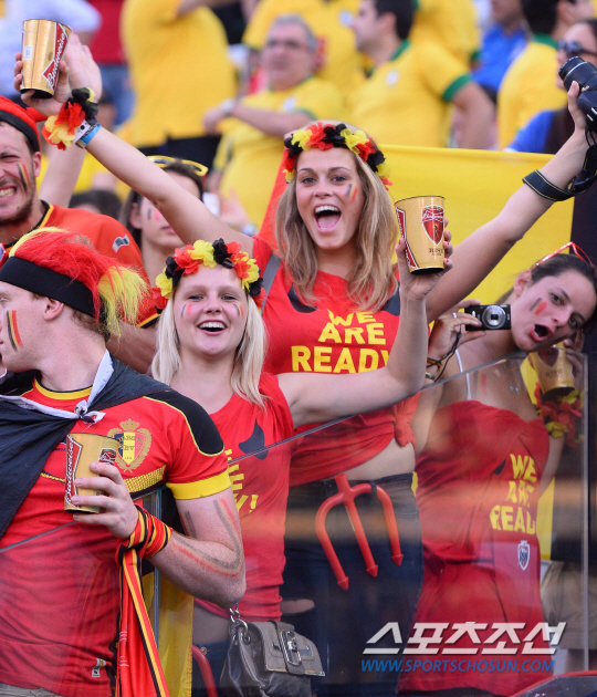 2014브라질월드컵 H조 3차전 한국과 벨기에의 경기가 27일 (한국시간) 상파울루의 아레나 코린치안스경기장에서 열렸다. 각양각색의 복장을 한 축구팬들이 응원전을 펼치고 있다.