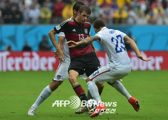 뮐러는 27일 오전(한국시각) 헤시피 아레나 페르남부쿠에서 열린 2014년 브라질월드컵 조별리그 G조 최종전 후반 10분 선제골을 기록했다. 환상적인 오른발 슛이었다. 메주트 외질이 오른쪽에서 왼발로 올려준 볼을 페어 메르테자커가 헤딩슛으로 연결했다. 팀 하워드 골키퍼가 선방한 볼이 뮐러에게 흘렀고, 뮐러는 지체없이 오른발로 빈구석을 향해 찼다. 아름다운 궤적을 그리며 골로 연결됐다.