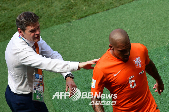 루이스 판할 네덜란드 대표팀 감독은 30일(한국시각) 포르탈레자에서 치른 멕시코와의 브라질월드컵 16강전을 마친 뒤 "데용이 다음 경기(8강전)에 출전하기 힘들 것"이라고 말했다. 데용은 멕시코전에 선발로 나섰으나, 경기시작 9분 만에 사타구니 부상으로 교체아웃됐다. 네덜란드는 이날 멕시코를 상대로 고전하다 후반 막판 2골을 터뜨리면서 2대1로 역전승, 극적으로 8강에 올랐다.