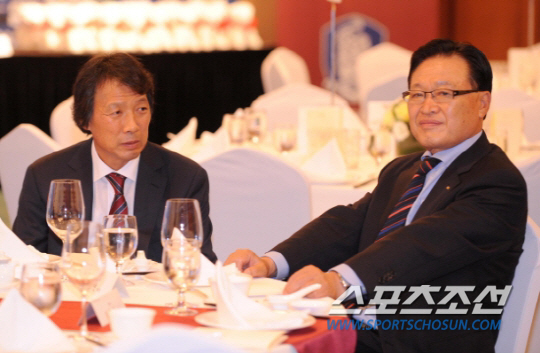 2010.8.5/ "2010 FIFA U-20 여자월드컵 대표팀 해단식" 5일 오후 소공동 조선호텔에서해단식을 갖고 있다. 해단식에 참석한 조중연회장과 조광래감독이 대화를 나누고 있다. <조선호텔=송정헌기자 songs@sportschosun.com> |