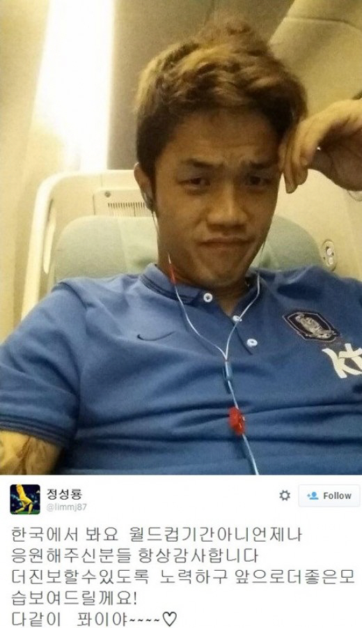 한편 정성룡을 포함한 한국 축구 대표팀은 30일 오전 4시께 인천공항을 통해 귀국했다. 귀국 후 해단식과 기자회견을 갖고, 월드컵 일정을 최종 마무리했다. <스포츠조선닷컴>