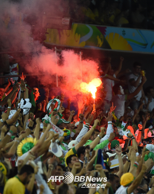 | ◇알제리 관중들이 러시아와의 최종전에서 '불꽃 응원'을 펼치고 있다. 쿠리치바(브라질)=ⓒAFPBBNews = News1 |