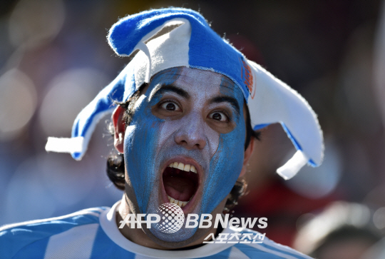 브라질 상파울루의 코린치안스 아레나에서 2014 브라질 월드컵 16강전 아르헨티나와 스위스의 경기가 펼쳐 졌다. 경기장을 찾은 아르헨티나 팬이 자국팀을 응원하고 있다. 아르헨티나는 120분간의 연장 혈투 끝에 디마리아의 결승골로 스위스를 1대0으로 물리치고 8강에 진출 했다.