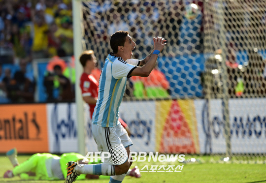 브라질 상파울루의 코린치안스 아레나에서 2014 브라질 월드컵 16강전 아르헨티나와 스위스의 경기가 펼쳐 졌다. 아르헨티나 디마리아가 연장전에서 골을 터뜨리고 좋아하고 있다. 아르헨티나는 120분간의 연장 혈투 끝에 디마리아의 결승골로 스위스를 1대0으로 물리치고 8강에 진출 했다.